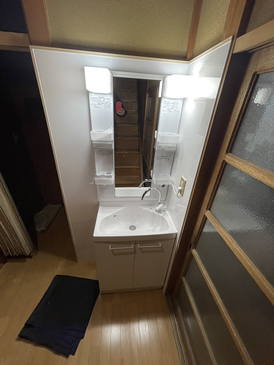 廊下の空きスペースに洗面化粧台を設置しました。